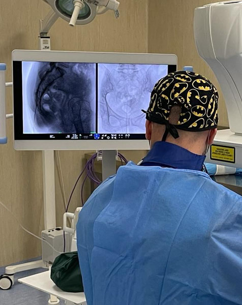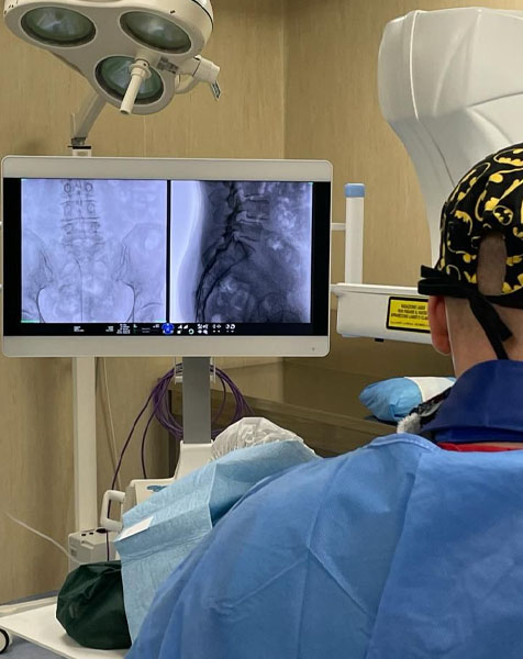 Epidural and/or Transforaminal Pulsed Radiofrequency is a radio-guided procedure performed by inserting a needle in the centre of the dorsal root ganglion that releases an electric current that is not felt by the patient, triggering an electric field that can be reduced or eliminated altogether. This pain treatment is used to treat intercostal neuralgia, back pain, low back pain following a herniated disc or vertebral body surgery (FBSS). This advanced treatment is minimally invasive and highly effective in treating joint pain.