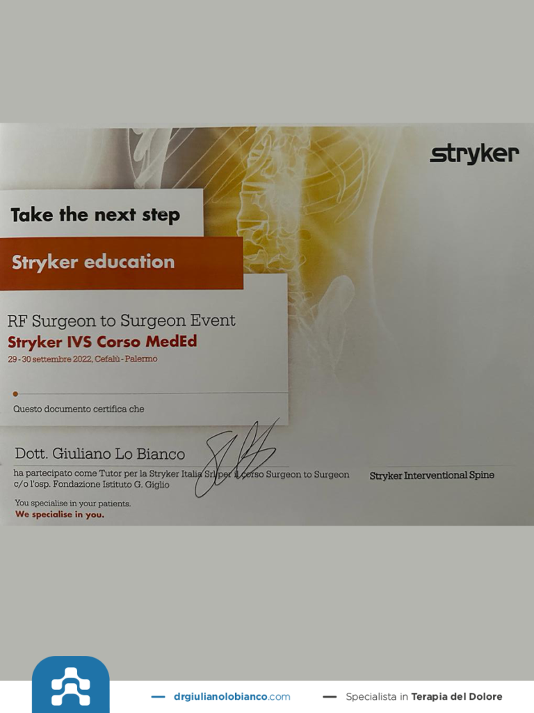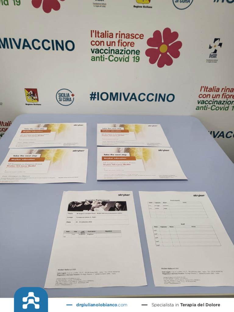RF Surgeon to Surgeon STRYKER class, live surgery and theory at the Fondazione Istituto G. Giglio di Cefalú. Tutor Dr. Lo Bianco, FIPP, EDPM who showed colleagues radiofrequency techniques.